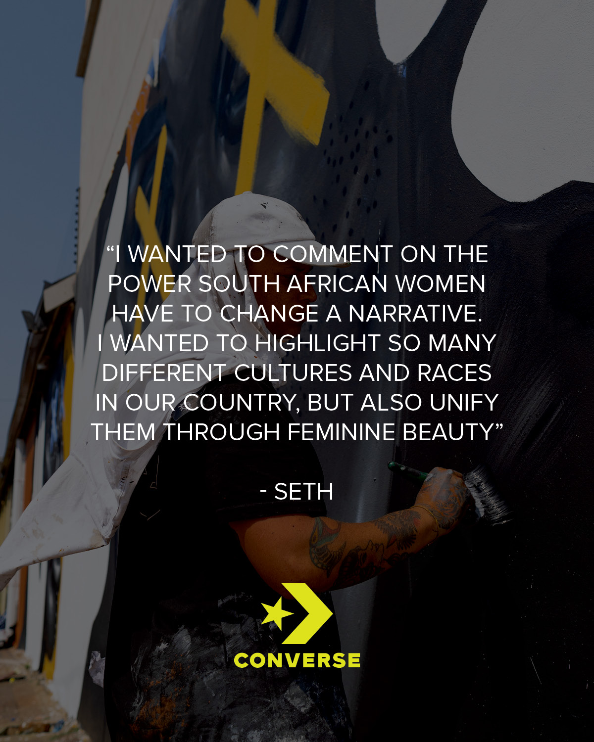 We were lucky enough to be part of this experience. Converse partnered with it’s creative community to create Converse City Forests, a series of murals around the globe designed by creatives designed to bring awareness and spark conversation around issues in their communities. Through the use of art, these Converse City Forests are a platform for creatives to share how they are Breaking Down Barriers in their communities. Our local artist was Seth Pimentel aka African Ginger, painted his mural as a statement about the power South African women have to change a narrative.